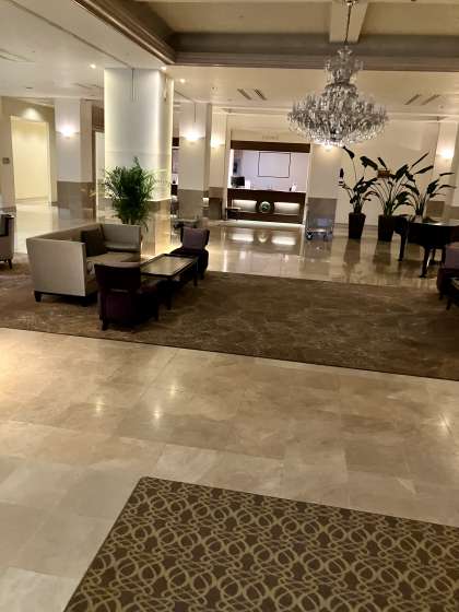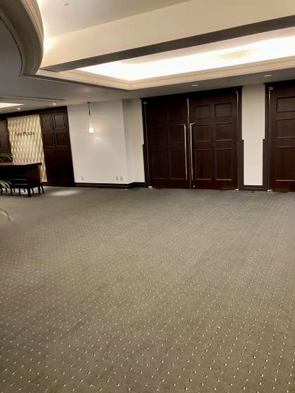ご飯の会場は結婚式の披露宴でも使われることもあり、とても広々としていて最高です。