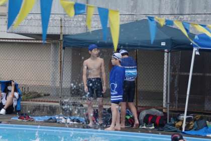 隅田中学校水泳部として臨む初の公式レース(6月の記録会は警報のため中止となりました)