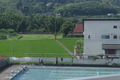 強い日差しの中、中村先生も日焼けに負けずに授業をしています。