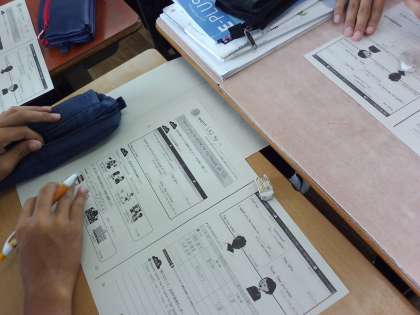 want to〜 〜したい!という構文をグループワークで実施していました。