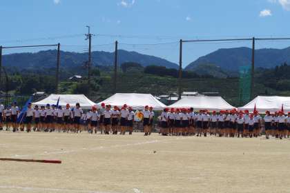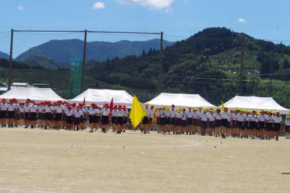 最終種目に向けて各ブロック、士気を高めて入場!