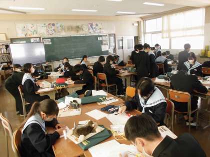 B組は美術室で、小さい時に見た飛び出す絵本を思い出しながら、ポップアップカードづくり!はなかっぱの絵をかいていた生徒も…!完成した作品が楽しみです。