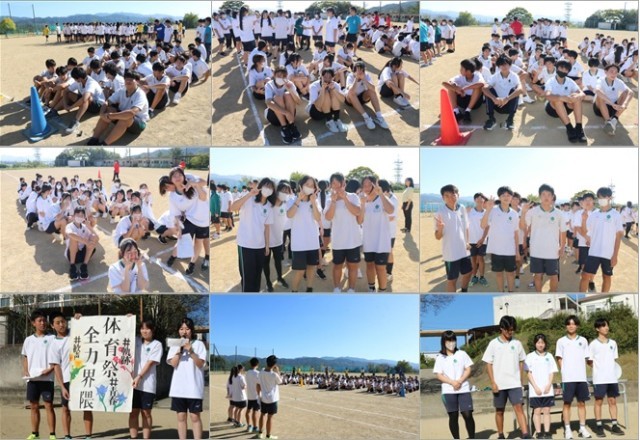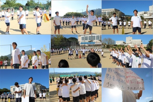 10月9日(木)、体育祭の結団式が行われました。生徒会からは、本年度のスローガン「体育祭 全力界隈」となることが発表されました。次に、各色組の団長と副団長の紹介、各色組の教職員の紹介、そして最後に各色組に分かれての意気込みと応援などが行われました。10月14日(火)から本格的に体育祭の練習が始まります。夏用の体操服の用意をして登校するようにしてください。