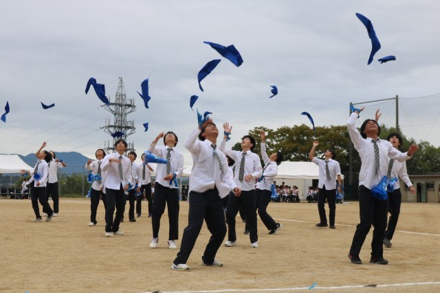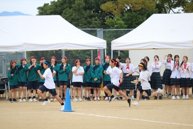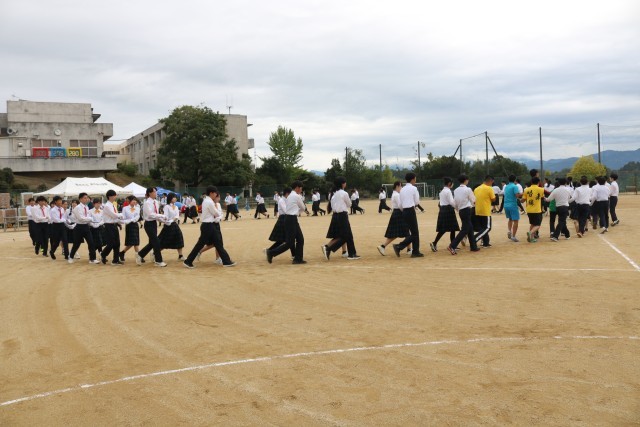 10月25日(土)、第48回紀見東中学校体育祭が実施されました。心配されていた天候もなんとかもって、最後まで競技を実施することができました。今回のスローガン「全力界隈」のもと、生徒みんなが全力で競技し、体育祭を盛り上げてくれました。応援合戦では、どの色組もすばらしいパフォーマンスを演じてくれました。閉会式での団長さんのあいさつで、感極まって涙を流す生徒もいました。