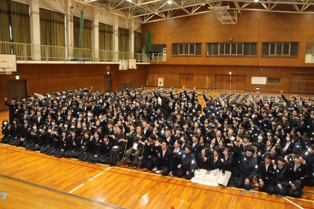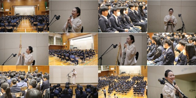 2月28日(金)、午後から予餞会が行われました。在校生より3年生への感謝の気持ちを伝える場として、生徒会が中心となり企画しました。前半は、本校卒業生の尺八奏者の辻本好美さんによる演奏と講演でした。素敵な演奏やお話をありがとうございました。後半は、生徒会による映像レクリエーションを行いました。クイズなど、大いに盛り上がりました。最後に、今年度退職を迎えられる先生方に対して、生徒から感謝の気持ちを伝えました。卒業式まで残り1週間となりました。みんなで過ごせる時間を大切にしましょう。