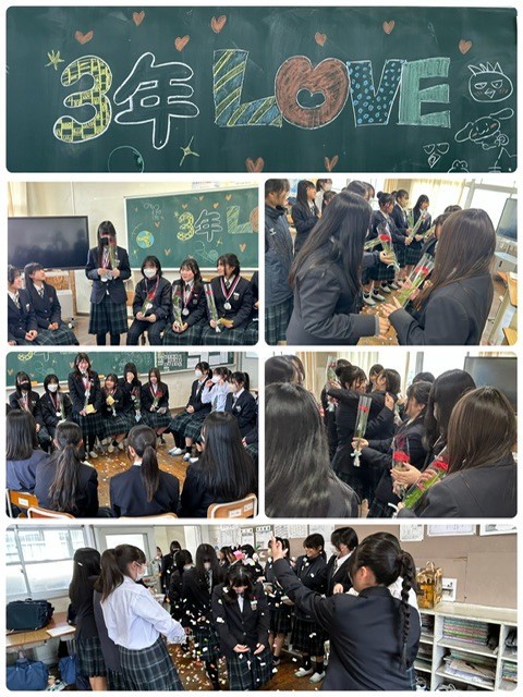 3年生のみなさん。これまでつらいこともあったと思いますが、3年間よく頑張りました。頼もしい姿をたくさん見せてくれました。これからも応援しています!