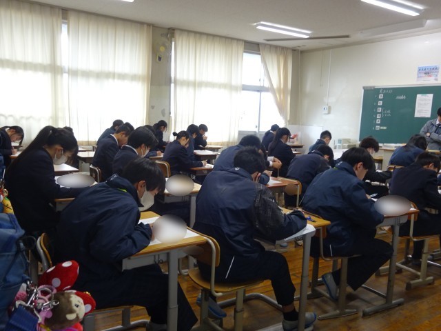 今までに学習した内容が出題されています。生徒たちは真剣な様子で取り組んでいました。