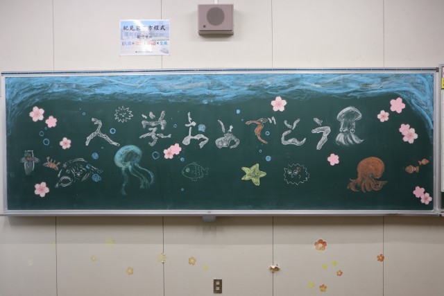 黒板アート➁ 公開日 2026/04/14 更新日 2026/04/14 学校紹介 入学式に新入生たちが楽しい気持ちで教室に入れるように、美術部の生徒たちが春休みに黒板アートをしてくれました。 いいね(0) 1年生 2年生 3年生 特別支援