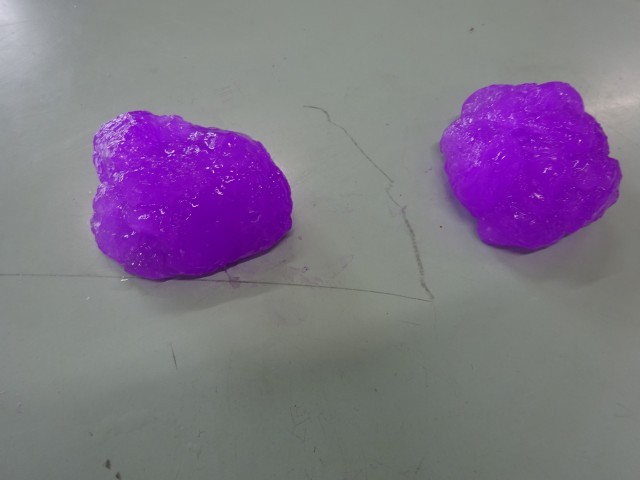 材料のホウ砂や洗濯のりの分量を調整して、スライムの粘り気などを変えたり、さまざまな実験をしてみました。