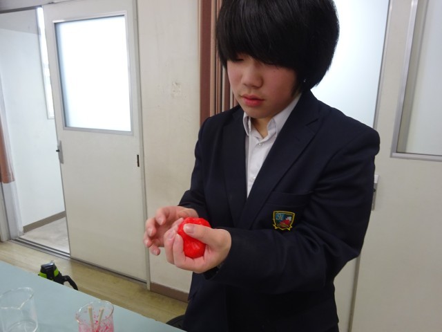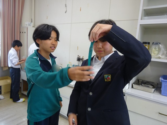楽しくスライムづくりをしました。人によって、スライムの粘り気や弾力の違いあり、ホウ砂の量や洗濯のりの量で異なることも学ぶことができました。