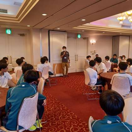 今日はあいにくの雨模様。朝食も役割分担をして予定よりも早く済ませることができました。天候による変更なども伝えてくれています。