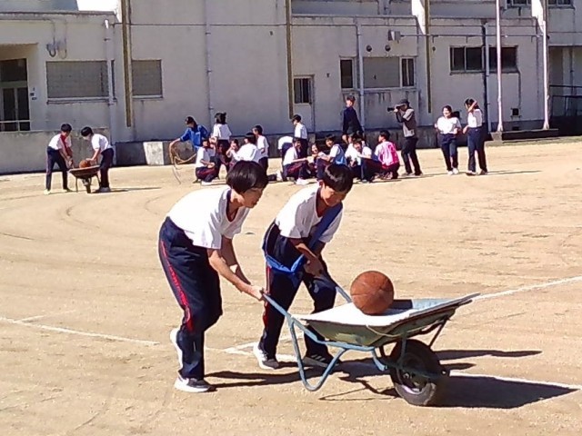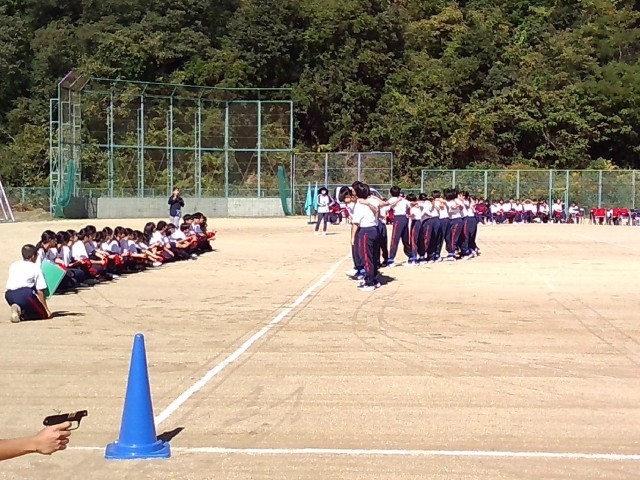 本日体育祭の予行を行いました。昨日の雨の影響で3限目からの実施になったため、最終確認の必要な種目に絞り予行を行いました。