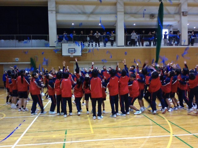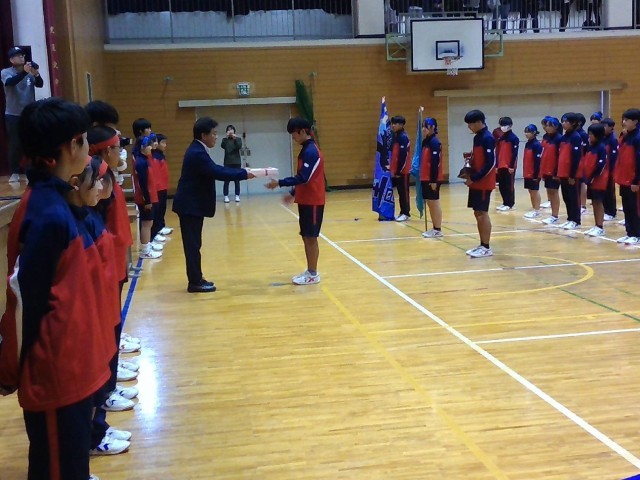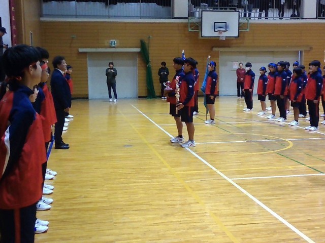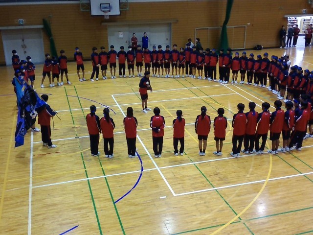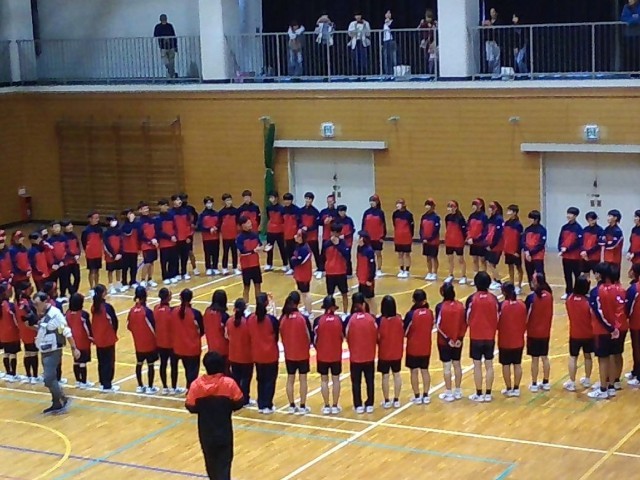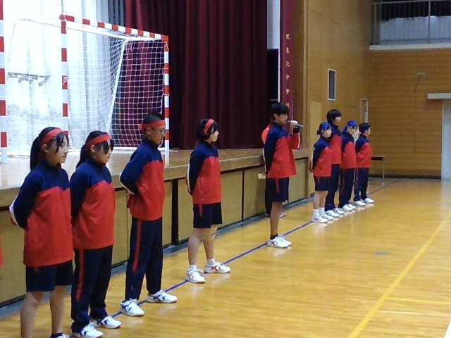 雲行きが怪しくなってきたため、先に片づけを済ませたうえで、午後から閉会式・解団式を体育館で行いました。