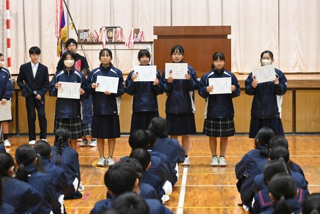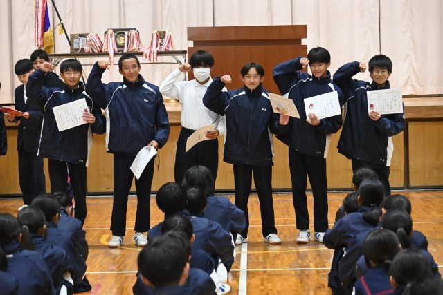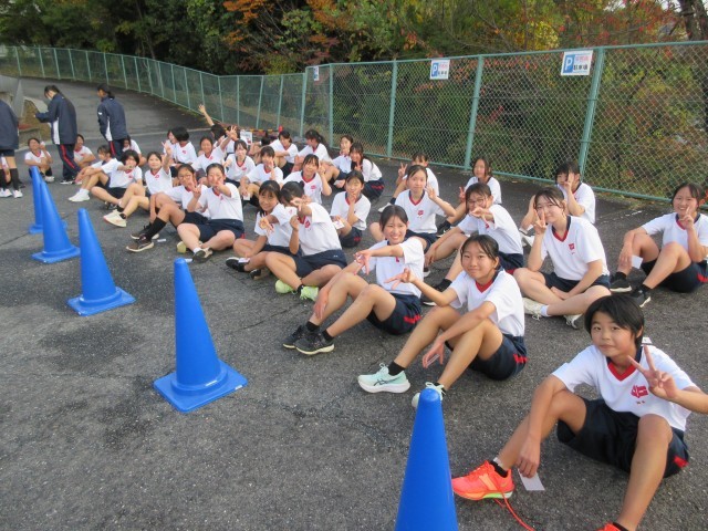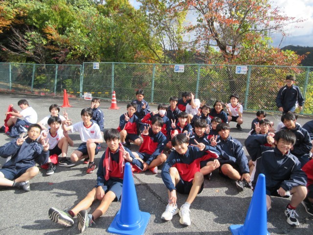 11月19日、令和7年度の校内マラソン大会が行われました。前日からの雨の影響でグラウンドの状態が悪かったため、アップ場所やゴール場所などを変更しての実施となりました。男子は約3.1km、女子は約2.8kmのアップダウンがあるコースを全力で走り切り、終わったあとは充実感あふれる笑顔でいっぱいでした。生徒の皆さん、よく頑張りました。本当にお疲れさまでした。また、コース観察にご協力くださったPTA保体部の皆さん、沿道で応援してくださった保護者の皆さんありがとうございました。