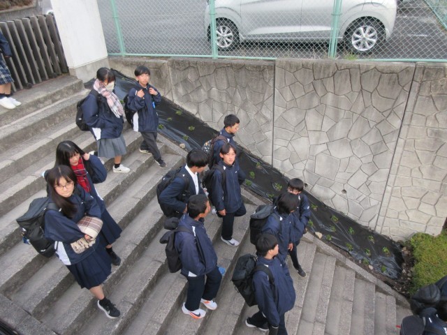 12月1日、PTA生活部役員さんによる下校指導が行われました。テスト発表中でほとんどの生徒が同じ時間帯に下校するため、その時間帯に合わせて生徒玄関前で声かけをしていただきました。役員の皆様、ありがとうございました!
