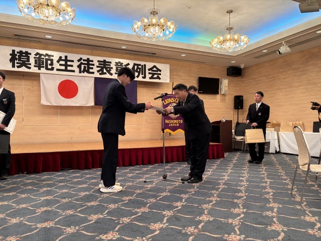 1月15日18:00より橋本市商工会館で模範生徒の表彰が行われました。