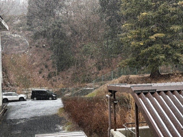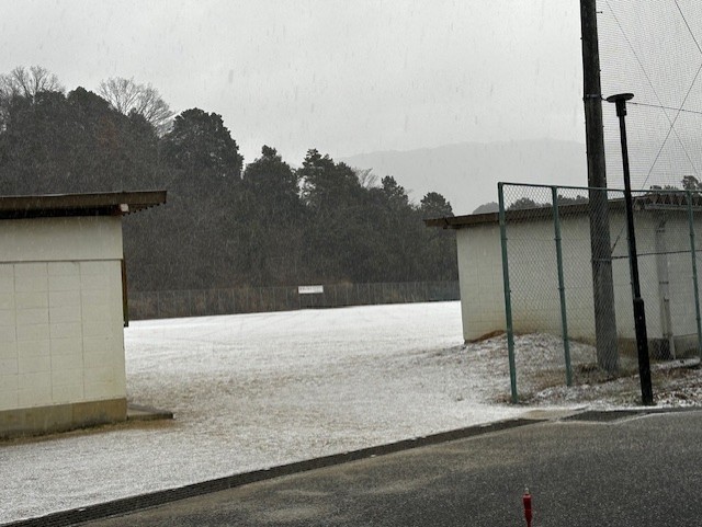 7時30分現在、紀見北中学校には雪がうっすら積もり始めています。