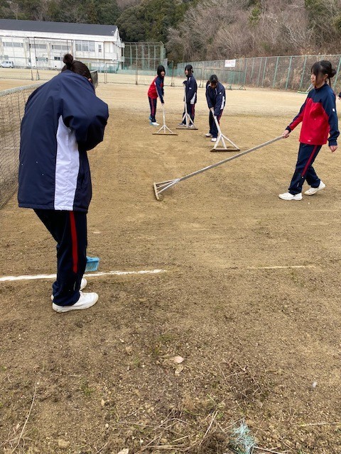 テニス部です。気温4度と寒い中、今日も練習を頑張りました!1月は今日で最後。1月の目標を達成することができたか、試合形式で自分たちのプレーを確認しながら練習に励みました。また、練習の最後にはコート整備も行いました。明日から2月。新たな目標を立て、目標達成に向けて頑張ります!