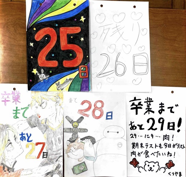 卒業まであと57日から始まったカウントダウンも、明日で残り10日。あっという間の3年間でしたが、その一日一日が今の成長につながっています。