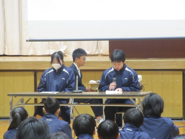 各委員会からの報告のあと、来年度の生徒会目標が発表されました。