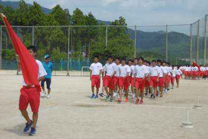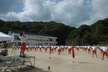 前回よりきれいに行進と体操ができました。全員が揃うととても美しいです。