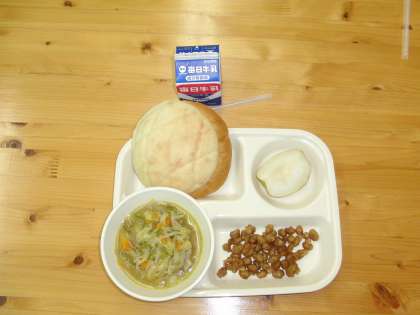 9月13日(火) メロンパン、牛乳、野菜炒め、フライビーンズ、梨