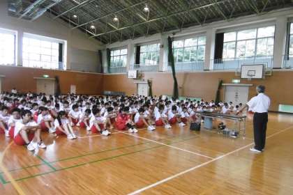 体育祭反省の集会 公開日 2016/09/16 更新日 2016/09/16 学校行事 昨日行った予行の反省の集会を行いました。 予行のビデオを視聴しながら各種目の担当の先生から改善点を伝えてもらいました。