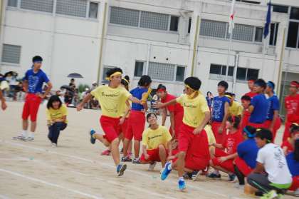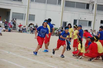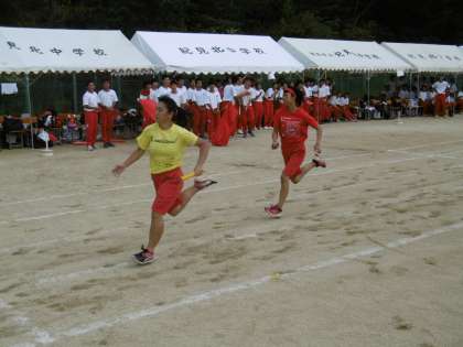 50m・100m・200mと走る距離を変えながらみんなでバトンをつないでいきます