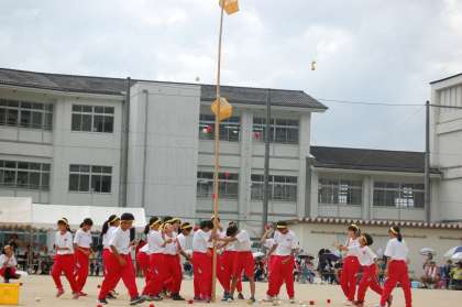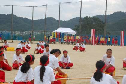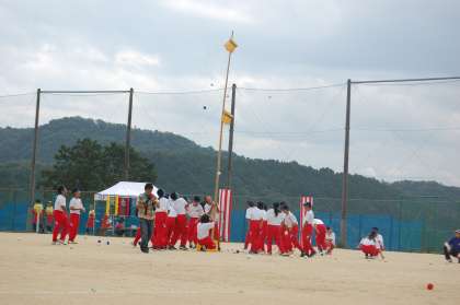 一年生の学年種目は玉入れでした。みんなカゴめがけて思いっきり投げ込みました。