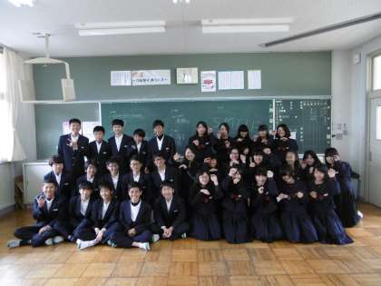 クラス写真を撮りました。2A担任は森先生、2B担任は今村先生です。