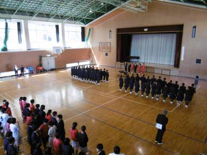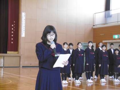 対面式での新入生代表挨拶を荒見美羽さんが行いました。また生徒会役員も紹介しました。