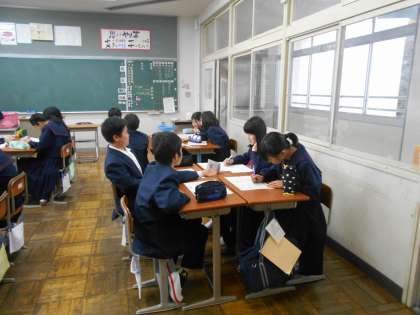 入学から約1週間が経ち、新しい友達も増え、少しずつ学校生活にも慣れてきました。今日の6限目の学活では学級目標を考えたりとグループで活動しました。2クラスとも活発に話し合いができていてよかったです!