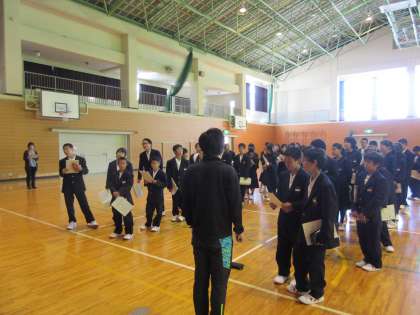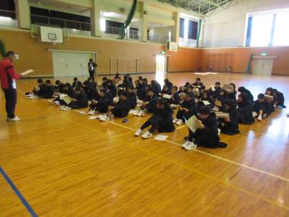 1年生校外学習の最終事前学習 公開日 2017/05/18 更新日 2017/05/18 1年生 明日はいよいよ1年生校外学習です。 今日は体育館で、しおりを見ながら、工程やきまりの最終確認を行いました。体育館への集合・整列も、当日の各集合隊形の確認も目標時間より早くできました。 明日は7:40に学校に集合完了です。今日のように素早く行動し、楽しい校外学習にしましょう。