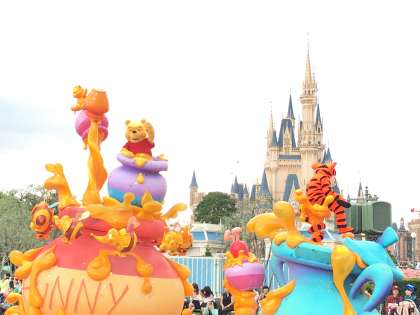 お昼のパレードの様子です。途中雨が降ってきたのですが、みんな楽しんでいます。