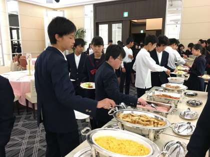 修学旅行最終日です。全員元気です。朝食はバイキングでみんな美味しくいただきました。