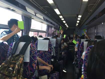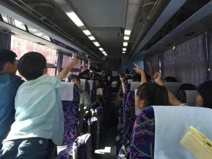 バスの中では、実行委員が準備してくれたビンゴゲームとクイズ大会で盛り上がっています! 実行委員ありがとう!