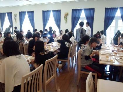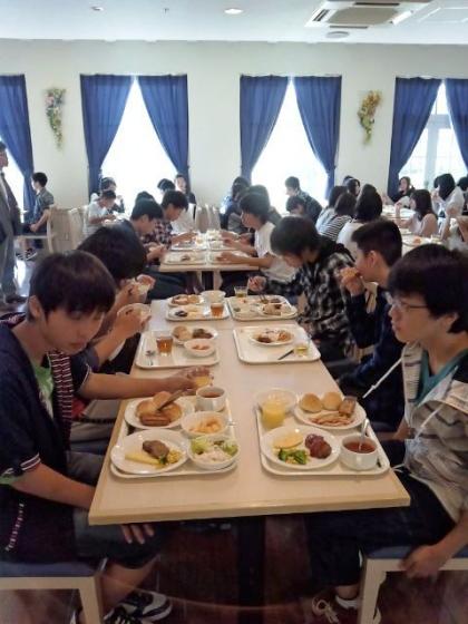 修学旅行2日目がスタート 生徒はみんな元気です。 ホテルでの朝食 「いただきます!」