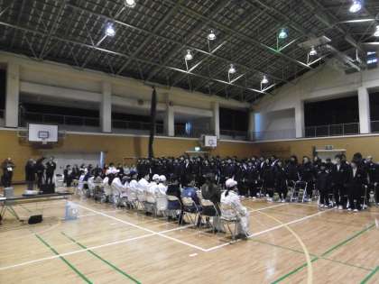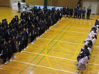 紀見北中学校の校歌を合唱し、学校紹介のビデオを上映しました。