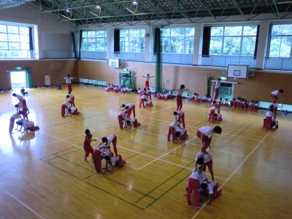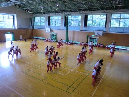 本日は体育館での練習なので、 学年に分かれて行いました。 3年生の様子です。