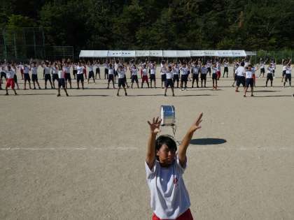 赤組の応援合戦の練習のようすです