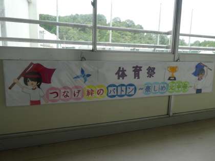 美術部のみなさんが今年度の体育祭のテーマの看板を作成してくれました 校内は体育祭ムードでいっぱいです