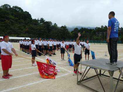開会式の様子です。天気が心配でしたが、予定通り全種目を行うことができました。本番もがんばりましょう!当日晴れることを願っています。