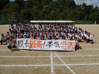 写真は今年度で退職される大野校長先生へのサプライズとして全校生徒で撮った写真です。