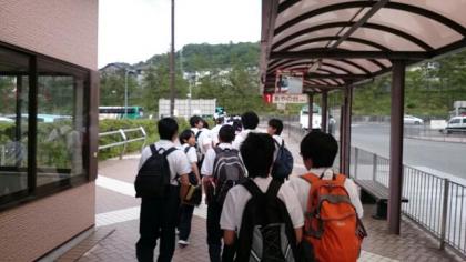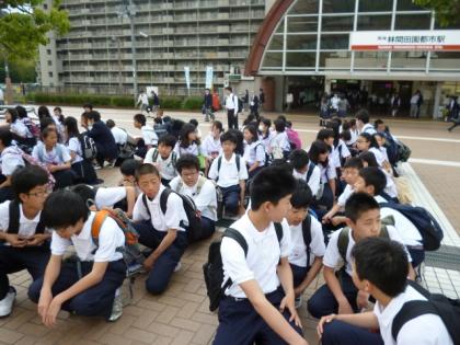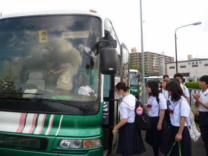 今日は校外学習日和ですね。 1年生は予定時刻通り、バスに乗って神戸へ出発しました。