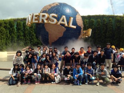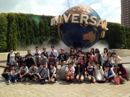 予定どおりにUSJに到着し、入場前に集合写真を撮りました。 現在は、すでに自由行動の時間帯です。