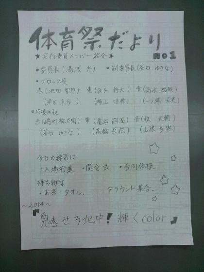 生徒会執行部より 「体育祭だより」が発行されます! 第1号は、実行委員メンバー紹介です