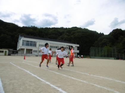3年生も全員リレーを行いました。 部活動を引退して久しいけど大丈夫?? 若いとはいえ、準備運動はしっかりしてね。
