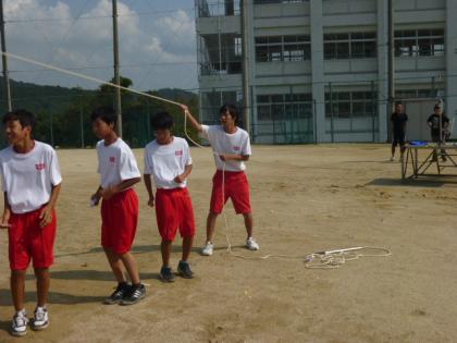 更なる飛躍 公開日 2014/09/12 更新日 2014/09/12 学校行事 今日の練習では8の字跳びで、 なんと200回以上跳び続けているグループもありました! 本番での更なる飛躍を期待します!縄跳びだけに。