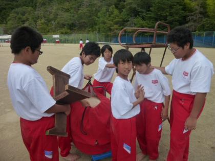タンブリング、最後の仕上げ! 公開日 2014/09/18 更新日 2014/09/18 学校行事 本日は男子タンブリング、女子創作ダンスの総仕上げ、各学年の種目の練習を行いました! タンブリングは和太鼓を用意し、気分を高めて最後の練習に取り組みました。 和太鼓は「たいいく委員」ならぬ「たいこ委員」の生徒達が設置してくれています! またケガで参加できない生徒も、違う形、役割でタンブリングに参加します!