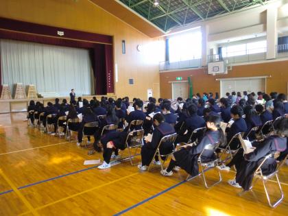 第二回進路説明会 公開日 2014/11/11 更新日 2014/11/11 3年生 午後から体育館で第二回進路説明会が行われました。 いよいよ本格的に進路決定をしていかなければならない時期になりました。